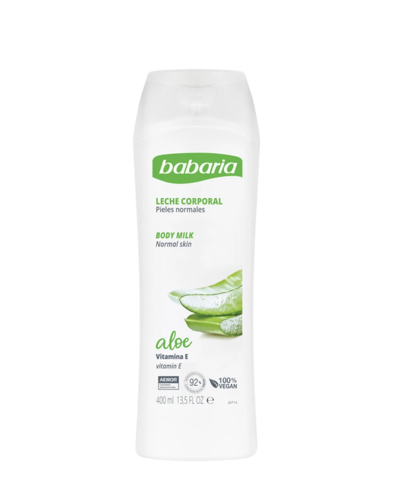 Laptele regenerant de corp Babaria Body Milk Aloe Vera Vitamin E pe bază de extract de aloe, regenerează eficient pielea, hidratează, elimină uscăciunea, hrănește și conferă netezime pielii. Produsul are efect antioxidant, calmant și cicatrizant, crește fermitatea și elasticitatea, netezește relieful, elimină uscăciunea, iritațiile și descuamarea. Tonifică și uniformizează tenul, crește funcțiile de protecție ale pielii, are o textură ușoară, fără lipici.