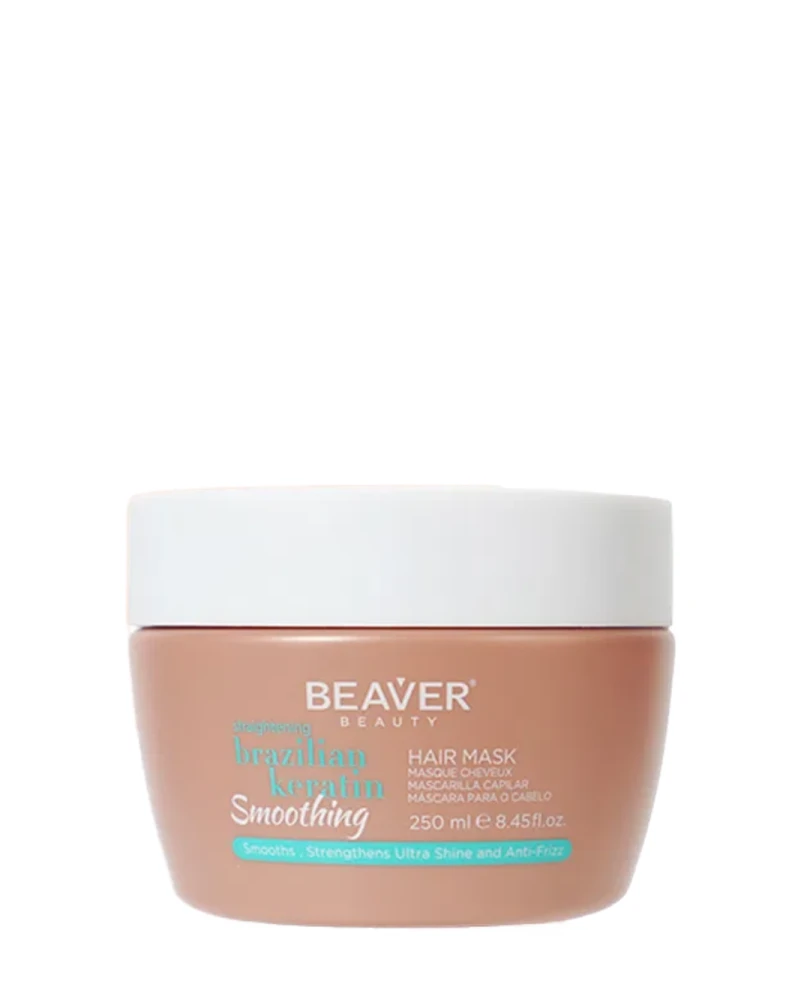 Masca hipoalergenică pentru netezirea părului BEAVER Brazilian Keratin Smoothing Hair Mask a fost creată pentru a proteja buclele de factorii externi agresivi și pentru a combate încrețirea părului. Masca reface părul deteriorat, elimină aspectul creț și conferă părului rezistență, elasticitate, netezime, catifelare și strălucire. Ușurează pieptănarea și coafarea, stimulează creșterea părului și întărește rădăcinile.
