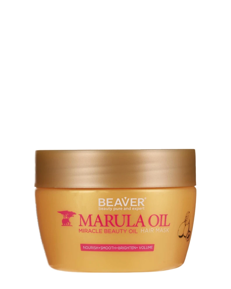 Гипоаллергенная питательная маска для волос BEAVER Marula Oil Hair Mask разработана для интенсивного ухода за сухими, ослабленными и поврежденными в результате частых химических воздействий, таких как окрашивание, осветление или горячая укладка волос. Маска создана для восстановления эластичности и блеска, снижения ломкости, устранения сухости; средство смягчает волосы, облегчая расчесывание и укладку, восстанавливает структуру волос, улучшая их внешний вид с первого применения. Благодаря запатентованной формуле "Color Brillianting Tech" надежно защищает цвет окрашенных волос, предотвращая его вымывание и выгорание.