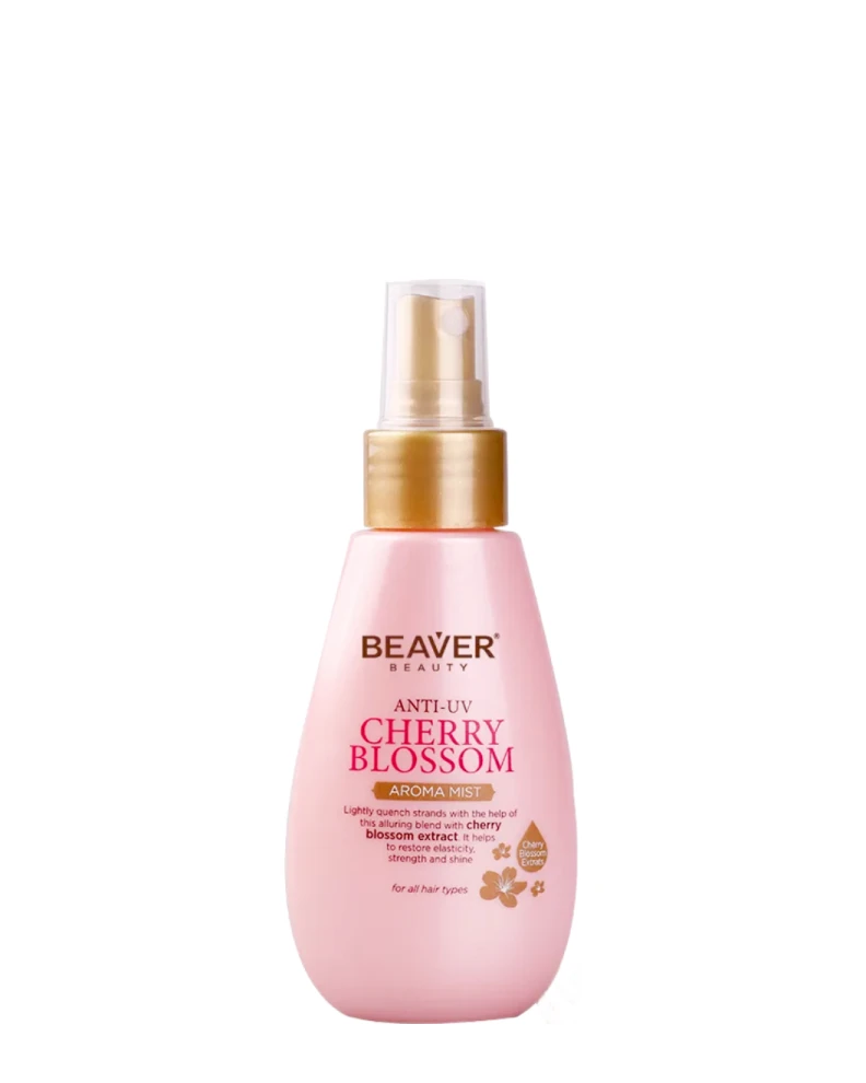Spray-ul parfumat, care nu necesită clătire, pentru păr BEAVER Anti-UV Aroma Mist Cherry Blossom cu aromă de sakura, întărește și reface structura deteriorată a părului, hidratează, împrospătează, conferă părului un parfum delicat și creează un strat protector pe păr, care nu permite părului să-și piardă umiditatea. Formula hipoalergenică are efect antioxidant, crește rezistența la efectele negative ale mediului înconjurător, prelungind ciclul de viață al părului și protejându-l împotriva căderii premature. Previne fragilitatea și uscăciunea, conferă netezime și strălucire, hrănește intens. Spray-ul hidratează și echilibrează pielea capului și contribuie la creșterea sănătoasă a părului, calmează pielea sensibilă.