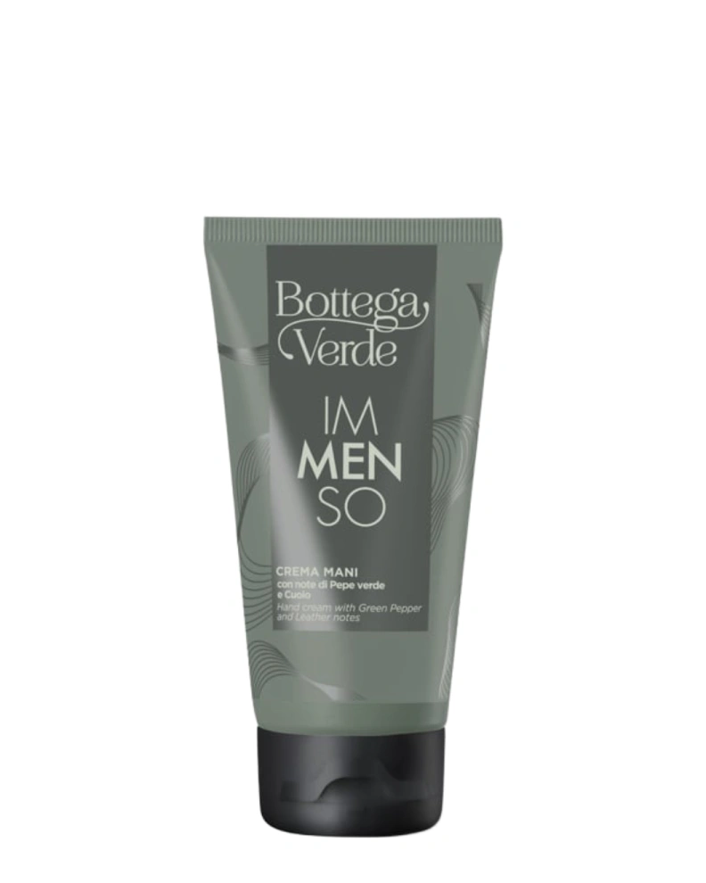 Crema parfumată de mâini pentru bărbați Bottega Verde Immenso Man Hand Cream are o textură cremoasă, se absoarbe rapid și nu lasă senzație lipicioasă. Crema hidratează și hrănește intens, reface pielea deteriorată a mâinilor, favorizează vindecarea, eliminarea iritațiilor, descuamării și uscăciunii. Înmoaie eficient pielea aspră, netezește și elimină senzațiile de disconfort.