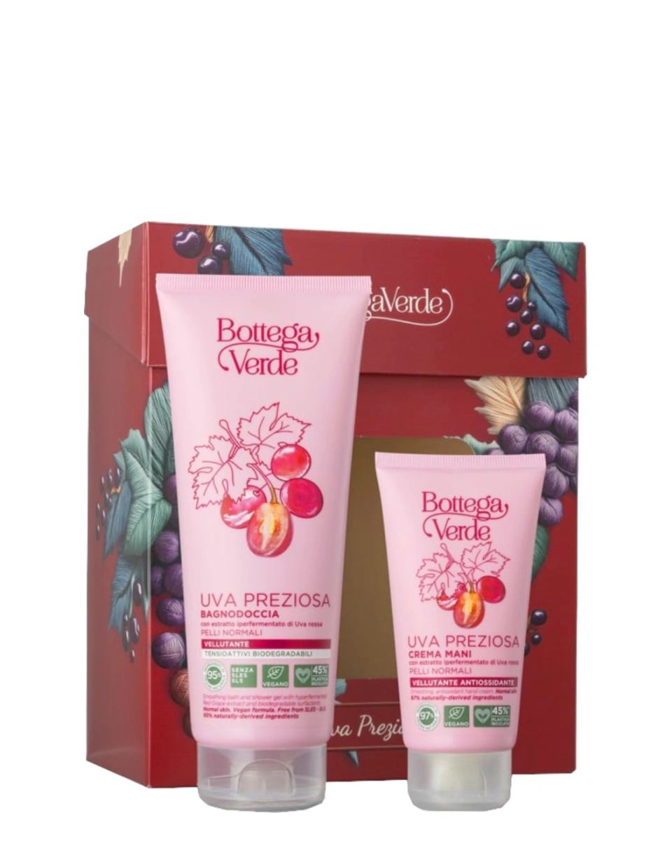 Setul cadou pentru corp Bottega Verde Uva Preziosa Beauty Kit include două produse parfumate: