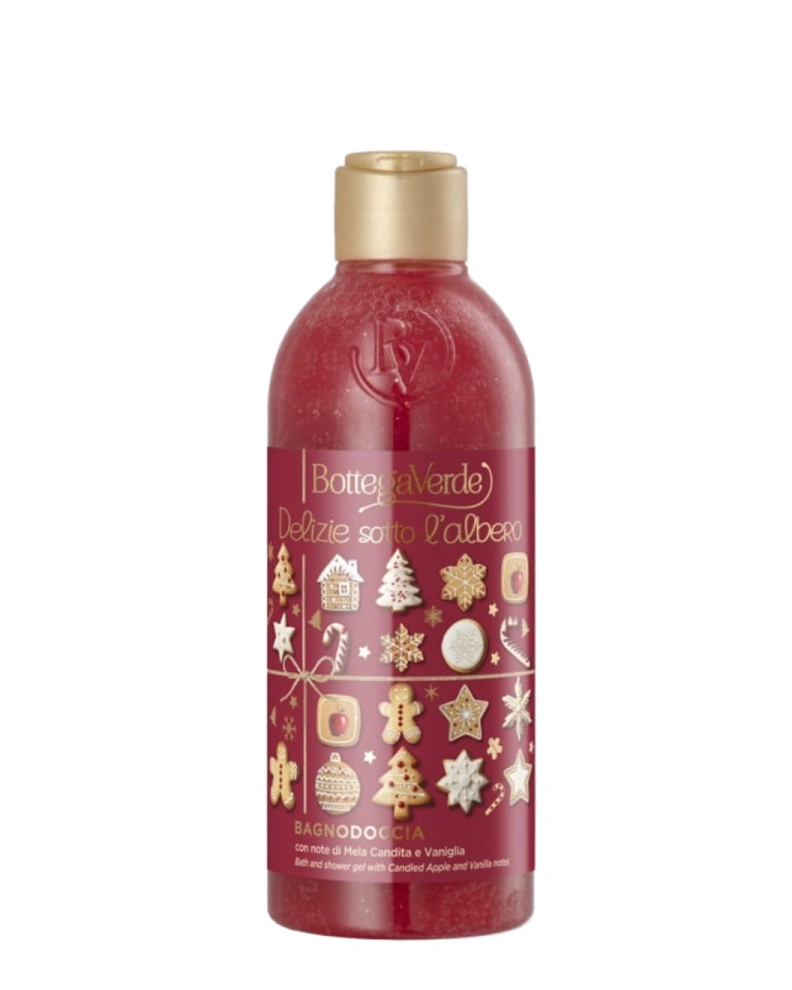 Spuma aromată pentru baie și gelul de duș Bottega Verde Delizie sotto L'albero Bath and Shower Gel curăță delicat și eficient pielea, o catifelează și o hidratează, contribuie la creșterea elasticității și fermității, conferă pielii un parfum delicat cu note dulci de mere confiate și scorțișoară. Gelul formează ușor spumă și are un parfum intens, dar în același timp delicat.