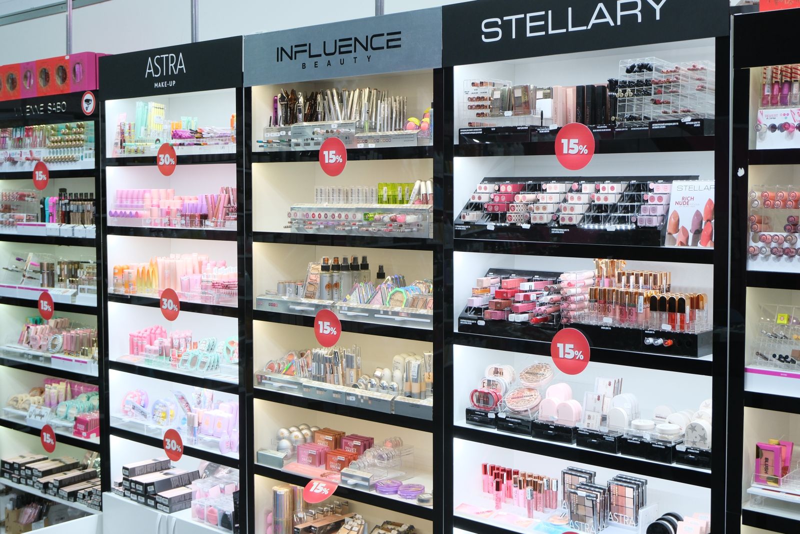 - Reduceri de 15%, 20%, 30% și 50% la întreaga gamă – produse cosmetice decorative, îngrijirea părului, produse pentru față și corp, precum și accesorii.