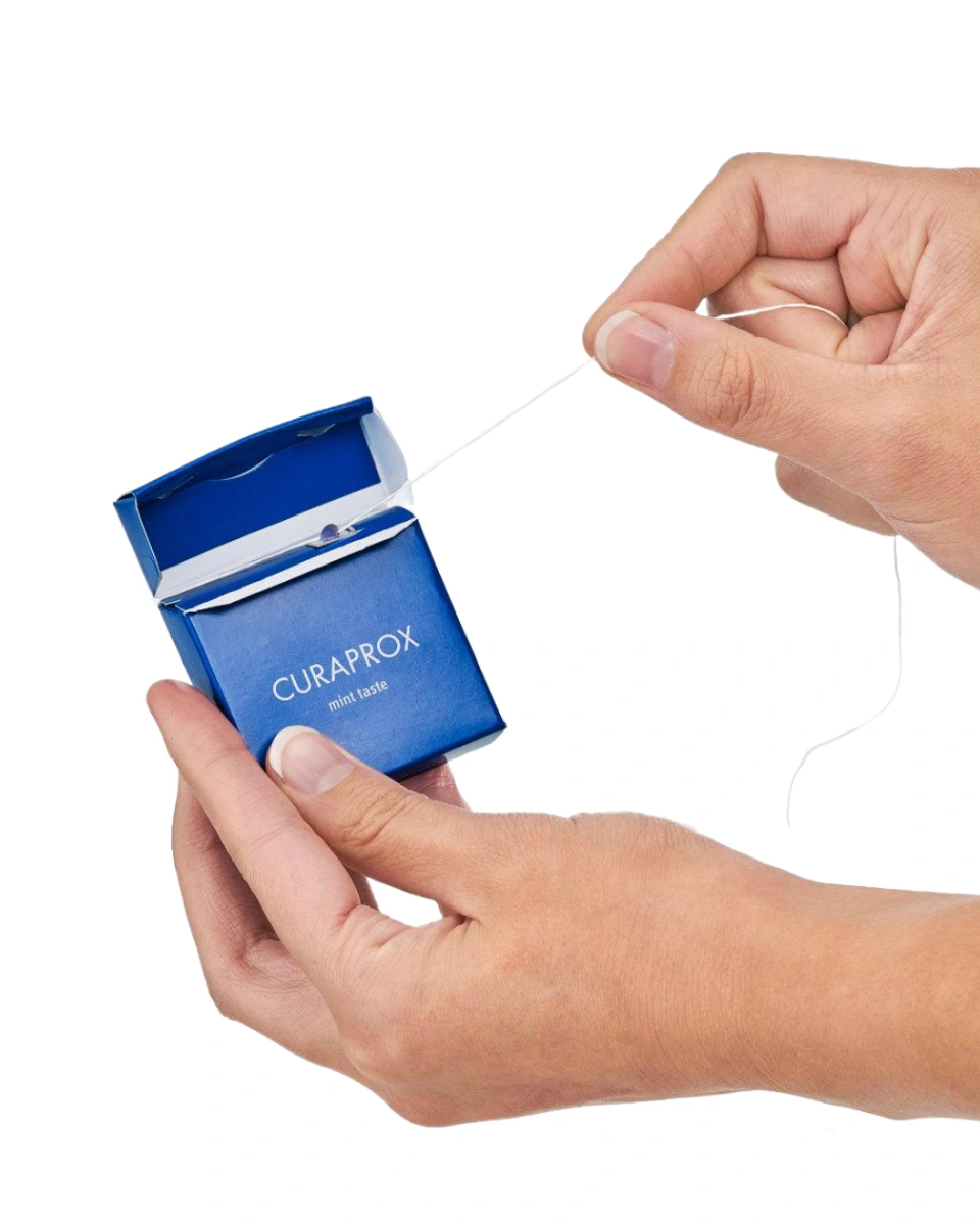 Ața dentară CURAPROX DF 850 Daily Dental Floss de nouă generație este fabricată din biopolimer (pe bază de ulei de ricin) într-un ambalaj 100% reciclabil, fără plastic. Este acoperită cu ceară vegană cu aromă naturală de mentă. Este destinată utilizării zilnice ca alternativă mai ecologică la ața dentară standard.