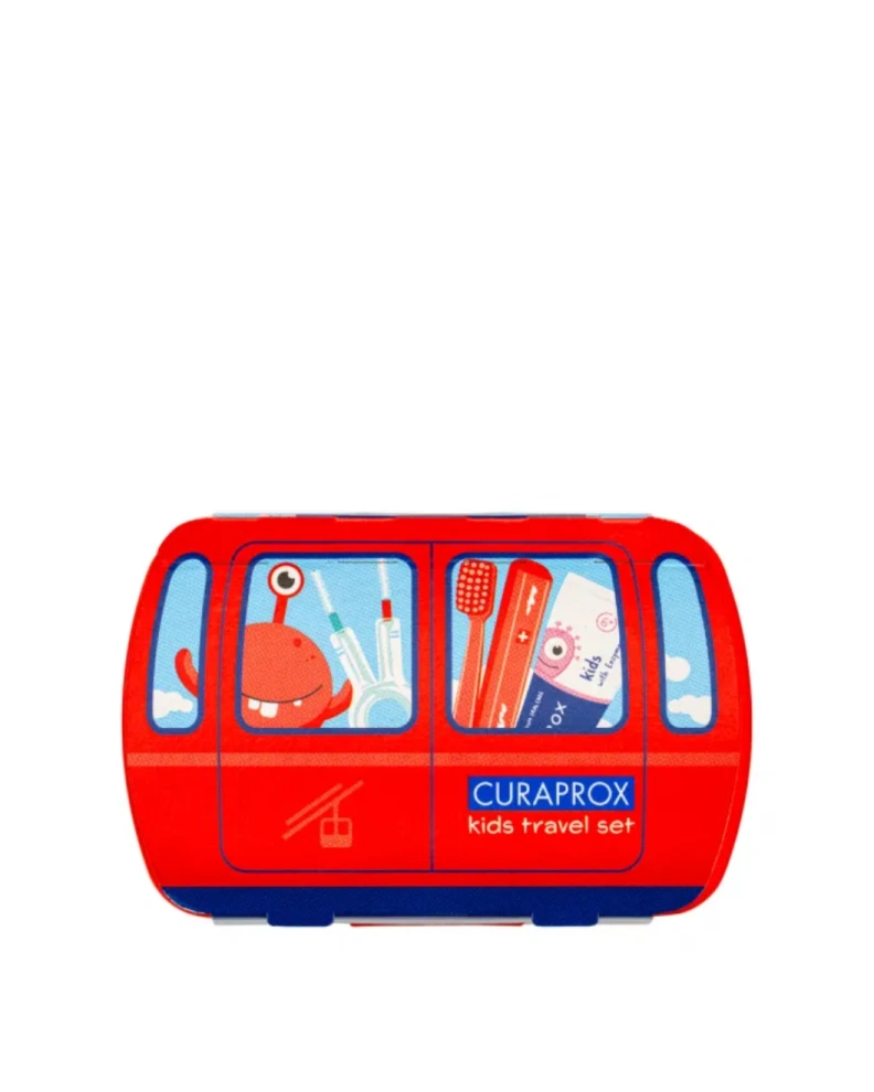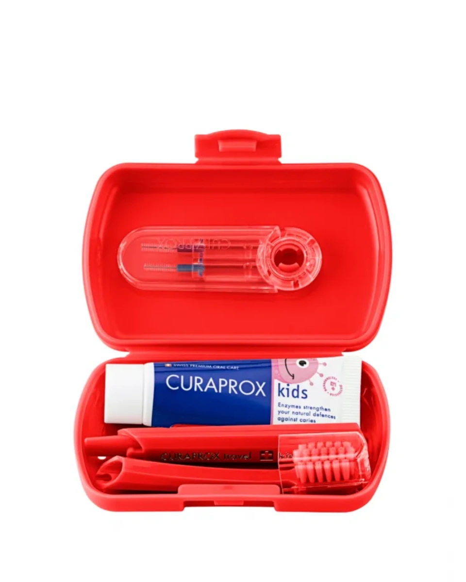 Setul de călătorie pentru copii CURAPROX Kids Travel Set Red va face zâmbetul copilului dumneavoastră să strălucească oriunde. Acest set universal, destinat copiilor cu vârste cuprinse între 6 și 12 ani, este ideal pentru vacanțele în familie, excursiile școlare, petrecerile în pijamale la prieteni și utilizarea zilnică după școală, asigurând o curățenie 100% a dinților în timpul călătoriilor.