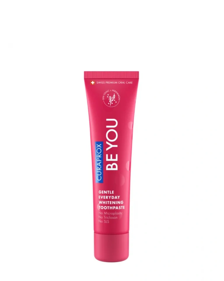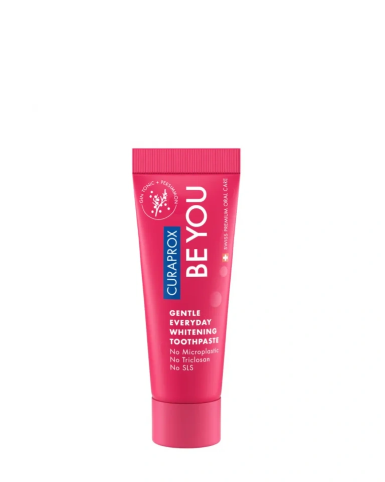 CURAPROX Be You Challenger este o pastă de dinți complexă cu gust de curmal și gin tonic (fără alcool), precum și de boabe de ienupăr cu note răcoritoare de mentă și cuișoare, care menține dinții sănătoși și albi, previne apariția bolilor bucale, menține respirația proaspătă pentru toată ziua și are un efect delicat de strălucire datorită enzimelor incluse în formulă. Sunt enzimele care dizolvă blând, fără a traumatiza smalțul, placa bacteriană și petele întunecate de pe smalț.