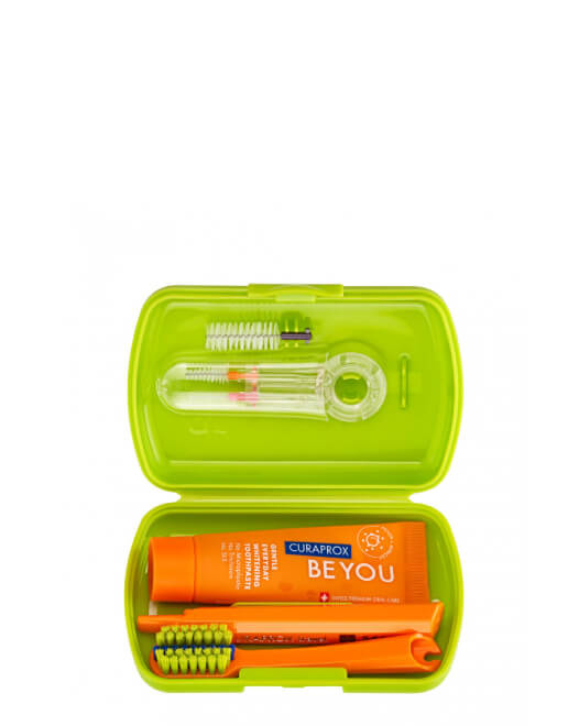 Setul de călătorie excepțional de compact Travel Set Ortho Green va fi cât mai comod posibil de luat cu dvs. în călătorii. Setul nu ocupă mult spațiu, dimensiunea lui este de 9,5 cm x 6 cm, poate încăpea cu ușurință în buzunar și poate fi luat cu dvs. în bagajul de mână în avion.