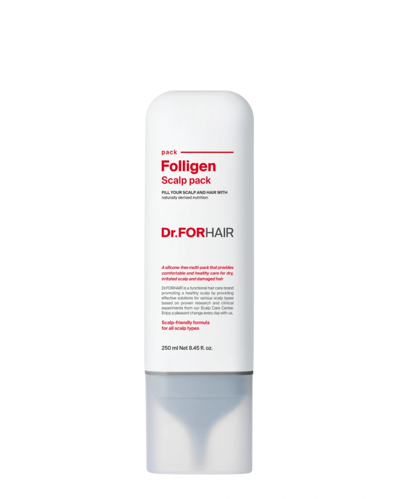 Masca-baslam multifuncțională revitalizantă Dr.FORHAIR Folligen Scalp Pack pentru scalp exercită acțiune complexă asupra pielii capului și a părului problematic; combate căderea, stimulează creșterea, îmbunătățește microcirculația în scalpul, intensificând nutriția foliculilor piloși, întărește părul slăbit, elimină uscăciunea, fragilitatea și iritația, hidratează și hrănește. Exercită acțiune antiinflamatoare și liniștitoare, eliminând senzațiile de disconfort pe piele. Masca are o consistență ușoară cremă-gel.