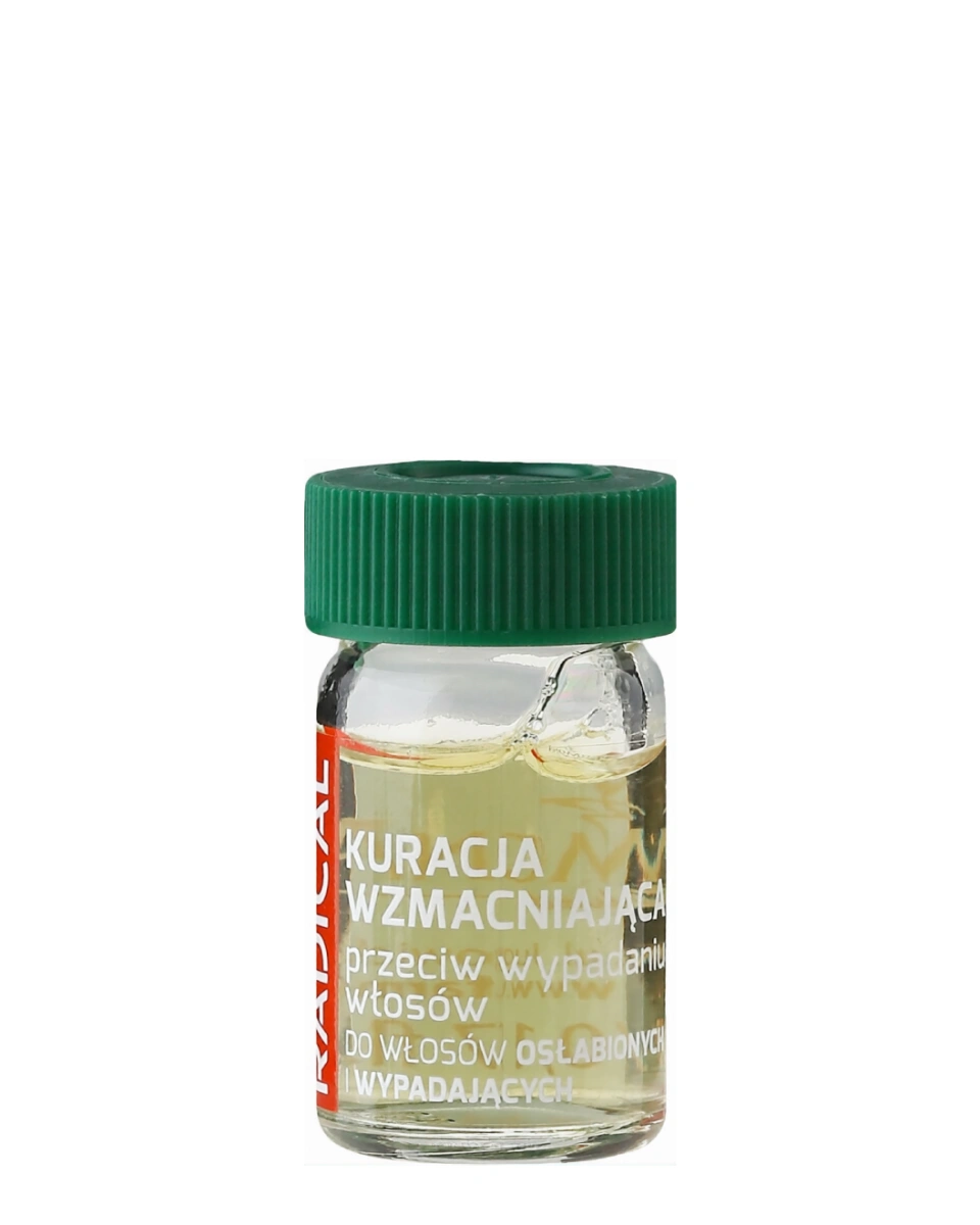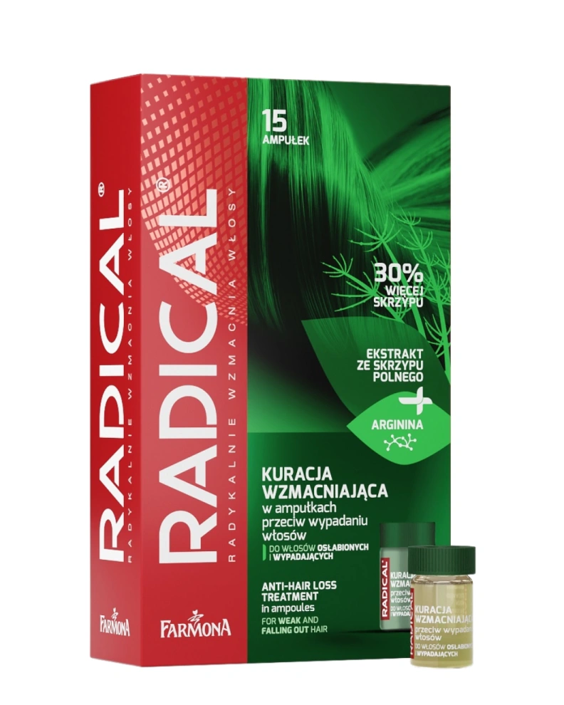 Ampolele fortifiante pentru păr slăbit Farmona Radical Med Anti-Hair Loss Treatment in Ampoules stimulează creșterea și au o acțiune preventivă împotriva căderii, întăresc rădăcinile firelor de păr, activând creșterea firelor sănătoase, trezesc foliculii „adormiți”, îmbunătățesc hrănirea, reduc fragilitatea și sporesc rezistența și elasticitatea părului. Produsul este orientat spre reducerea căderii părului, intensificarea rezistenței la deteriorări și îmbunătățirea vizuală a stării părului.
