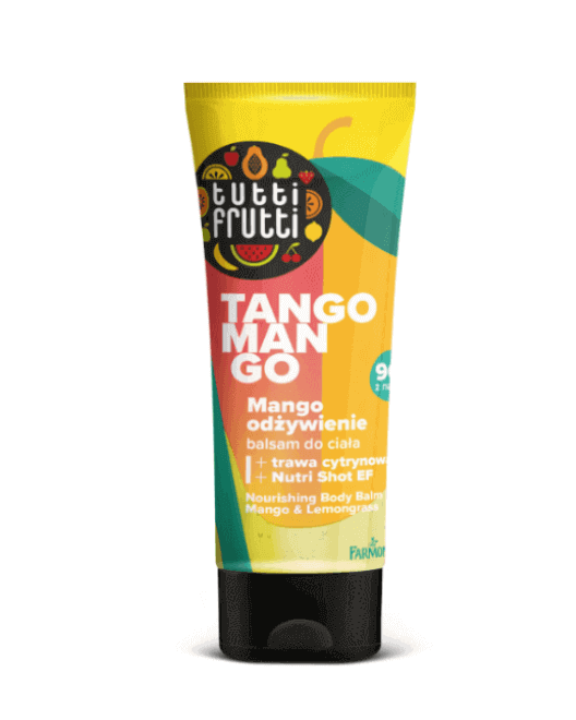 Balsamul hrănitor de corp are o formulă organică bogată și o textură ușoară de sorbet de fructe, care se absoarbe instantaneu și hidratează epiderma.Tutti Frutti Nourishing Body Balm Mango and Lemongrass de la marca Farmona împrospătează și tonifică epiderma, hidratează și hrănește eficient pielea cu substanțe utile, catifelează, previne deshidratarea pielii, menține echilibrul hidrolipidic optim, elimină uscăciunea, peelingul, vindecă microfisurile, strânge epiderma, combate roșeața și calmează pielea. Produsul are o aromă de fructe tropicale și se absoarbe rapid fără a lăsa urme pe corp.