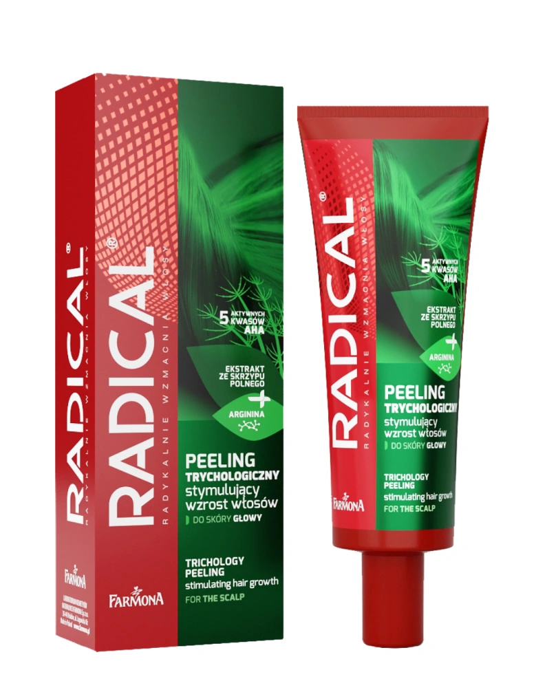 Peeling-ul trihologic pentru scalp Farmona Radical Trichology Peeling Stimulating Hair Growth for the Scalp declanșează procesele de reînnoire și regenerare pentru procesul normal de creștere a părului, exfoliază delicat stratul de celule moarte, stimulând creșterea părului și asigurând aportul de oxigen către foliculii piloși.