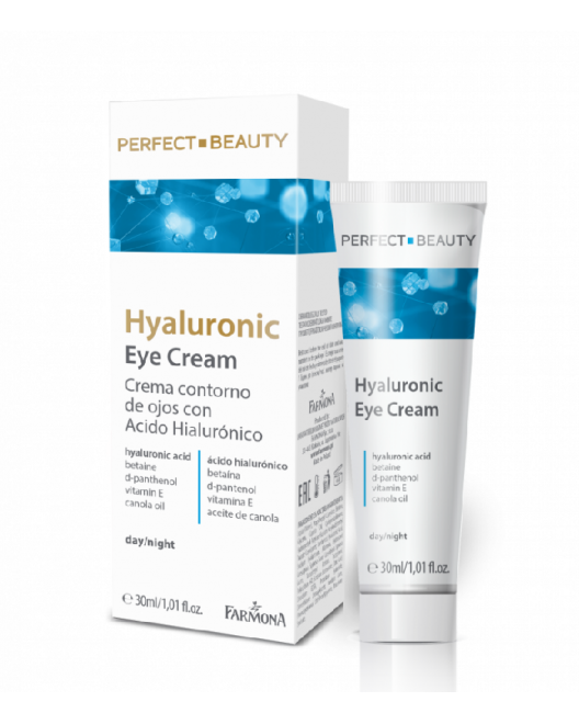 Увлажняющий и разглаживающий крем с гиалуроновой кислотой вокруг глаз Perfect Beauty Hyaluronic Eye Cream day/night, 30ml снимает чувство раздражения на коже и придает ей яркость и сияние. Крем увлажняет и питает, минимизирует мимические морщины, улучшает внешний вид кожи, делая ее мягкой и гладкой.