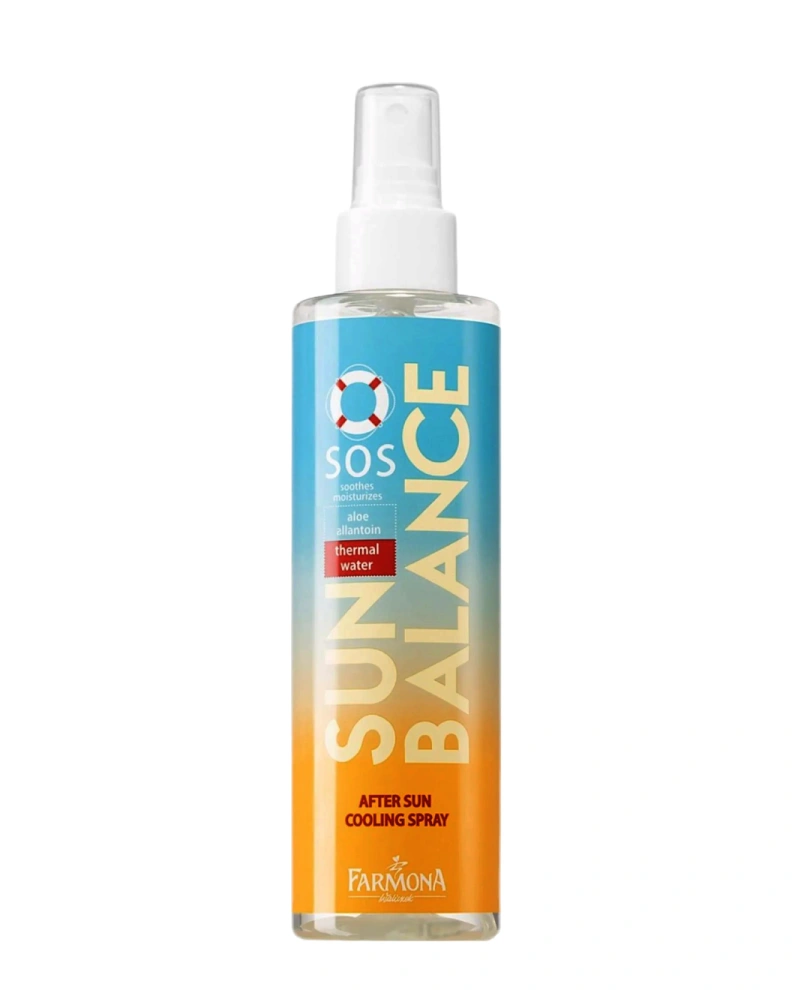 Spray-ul răcoritor după plajă pentru regenerarea pielii Farmona Sun Balance After Sun Cooling Spray oferă o îngrijire complexă a pielii după expunerea la soare. Formula ușoară, cu absorbție rapidă, calmează rapid iritațiile și hidratează pielea, catifelând-o și împrospătând-o. Are o acțiune hidratantă și de refacere a pielii după bronzare, răcorește pielea, menține fermitatea și elasticitatea, calmează.