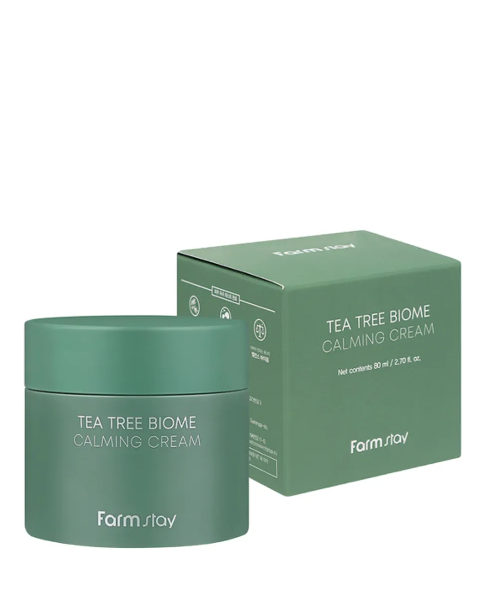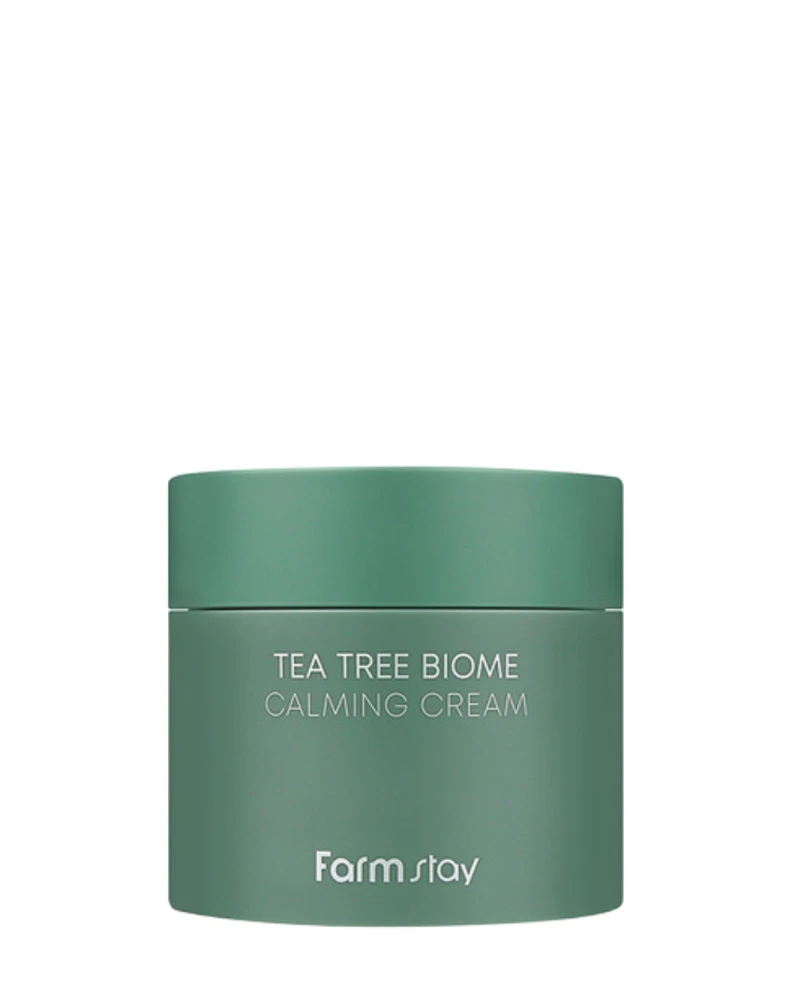 Crema calmantă și hidratantă pentru față FarmStay Tea Tree Biome Calming Cream cu extract de arbore de ceai și centella, îngrijește eficient pielea iritată, sensibilă, problematică și obosită. Crema contribuie la netezirea ridurilor, hidratează și menține umiditatea, elimină roșeața și iritațiile, reface și menține bariera protectoare, catifelează intens pielea aspră. Produsul calmează inflamațiile și previne apariția altora noi. Datorită consistenței sale ușoare și non-grasă, crema se absoarbe rapid, fără a lăsa senzația de lipici.