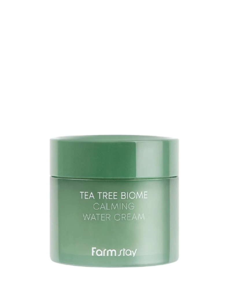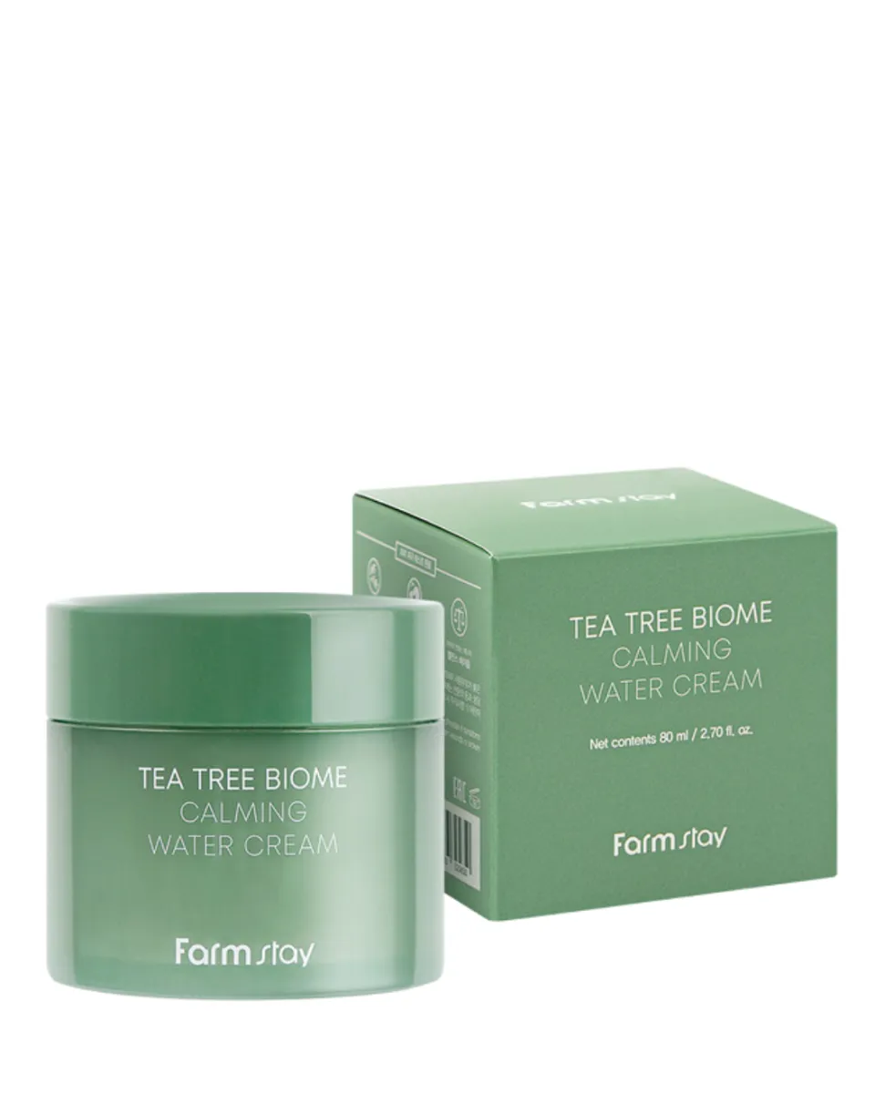 Crema calmantă și hidratantă de față FarmStay Tea Tree Biome Calming Water Cream pentru pielea sensibilă, cu o textură răcoritoare și foarte ușoară, ajută la eliminarea senzației de disconfort pe pielea deteriorată și sensibilă, la reducerea nivelului de inflamație și sensibilitate, la eliminarea iritațiilor și roșeții pielii. Crema contribuie la netezirea ridurilor, hidratează și păstrează umiditatea, reface și menține bariera protectoare, catifelează intens și conferă netezime.
