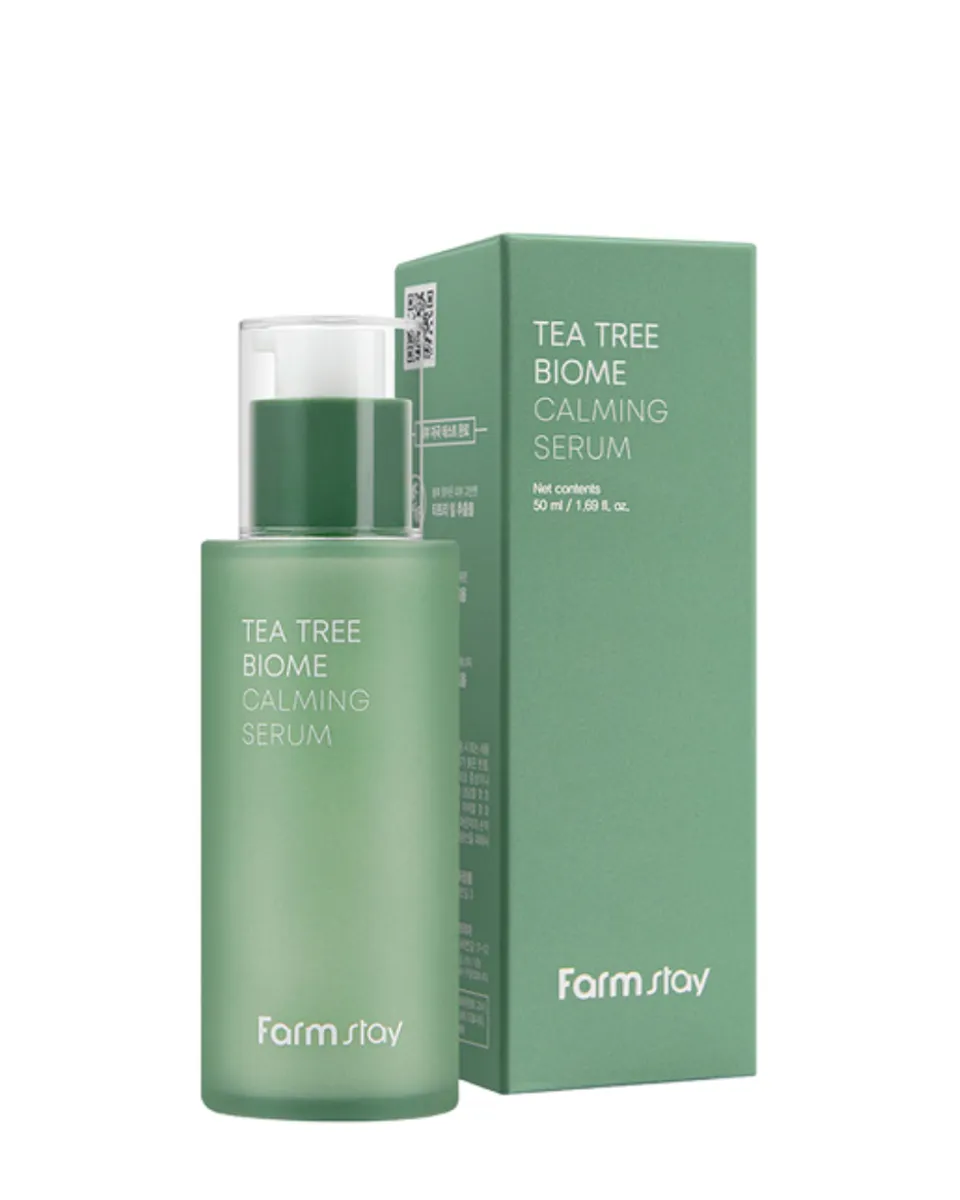 Serul calmant FarmStay Tea Tree Biome Calming Serum cu arbore de ceai ajută la refacerea barierei protectoare naturale, calmează pielea și conferă o senzație de confort. Împrospătează, reduce nivelul inflamațiilor, roșeții, elimină iritațiile și uscăciunea, contribuie la netezirea ridurilor, hidratează și păstrează umezeala, creează o barieră protectoare, catifelează intens pielea aspră.