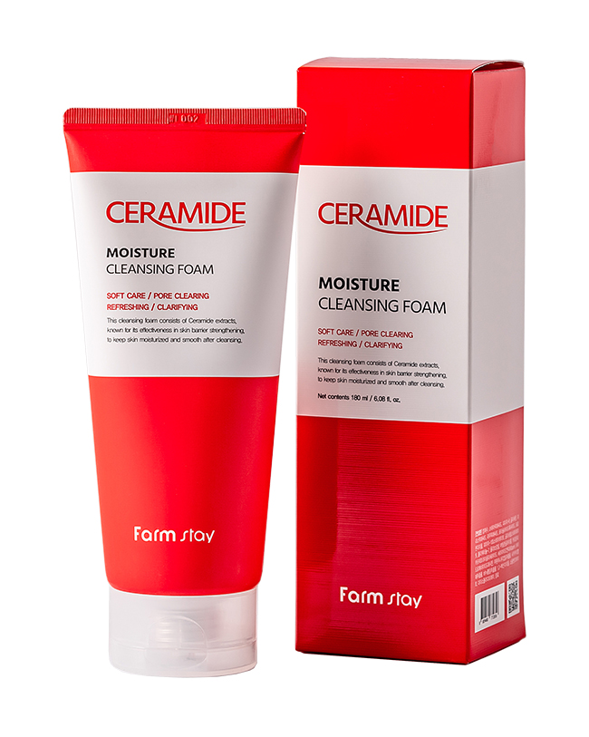 Spuma hidratantă de curățare Farmstay Ceramide Moisture Cleansing Foam, cu textură cremoasă delicată pe bază de ceramide, este destinată curățării eficiente a pielii. Produsul îndepărtează cu delicatețe impuritățile și excesul de sebum, hidratează pielea, creează o barieră protectoare, previne pierderea de hidratare, face pielea mai puțin sensibilă la razele ultraviolete și la frig, îmbunătățește elasticitatea, netezește și întărește.