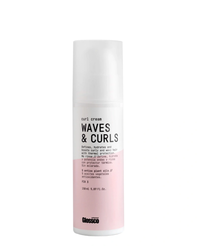 Crema pentru păr Glossco Waves & Curls Curl Cream este un produs cu un grad mediu de fixare, care definește, hidratează și îmbunătățește forma părului creț și ondulat, oferind o fixare flexibilă. Crema asigură o hidratare de lungă durată, nutriție și strălucire, eliminând uscăciunea, fragilitatea și electrizarea și reducând porozitatea.
