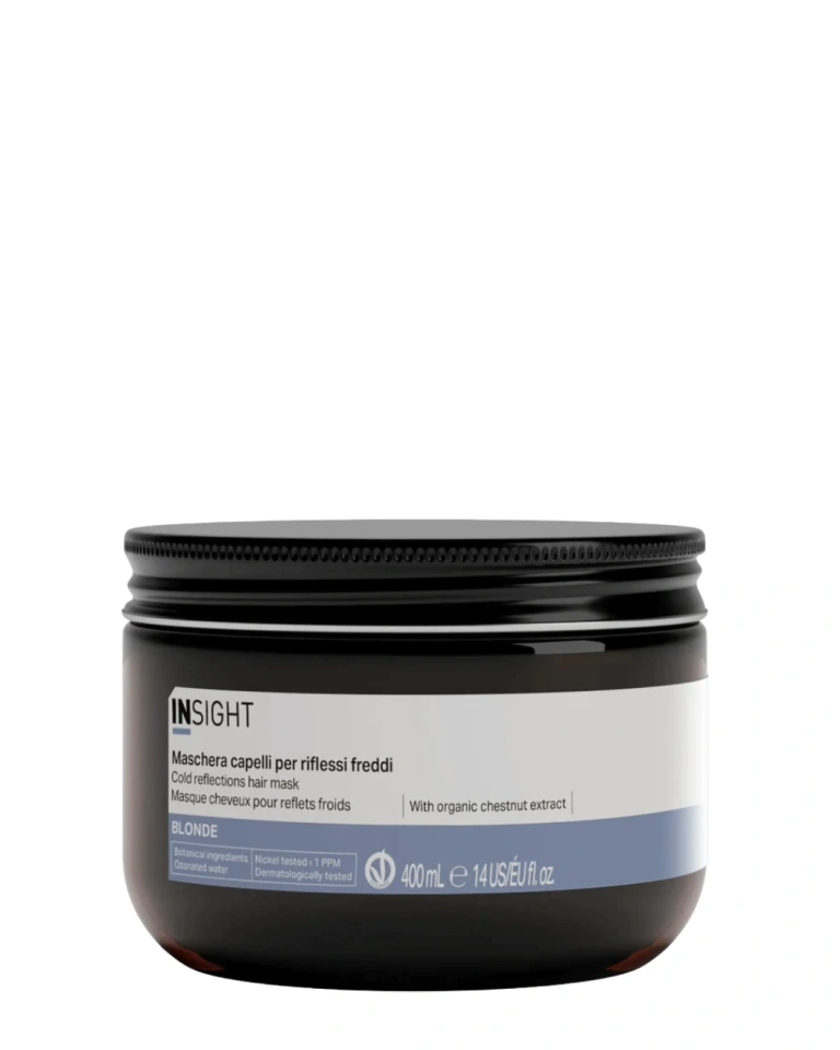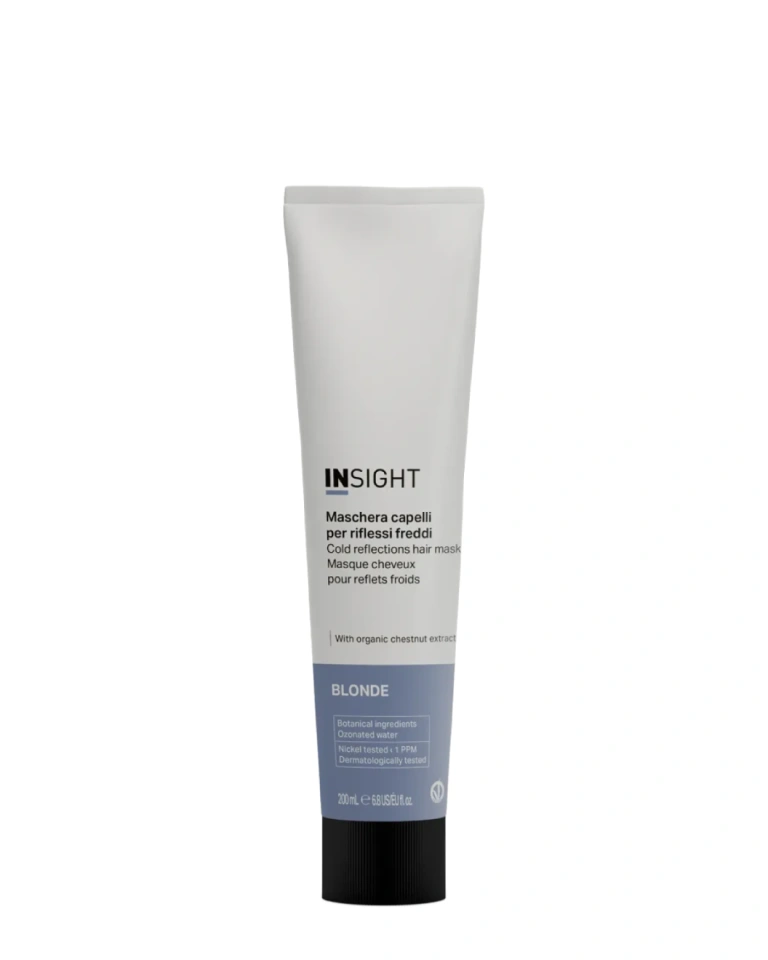 Masca pentru a menținerea nuanțelor reci Insight Blonde Cold Reflections Hair Mask face parte din linia de produse Blonde pentru crearea nuanțelor de blond și îngrijirea părului decolorat. Masca hidratează scalpul și șuvițele, reface structura, redă strălucirea radiantă, îmbunătățește fermitatea și elasticitatea și ajută la menținerea nuanței de păr rece pentru o perioadă lungă de timp.