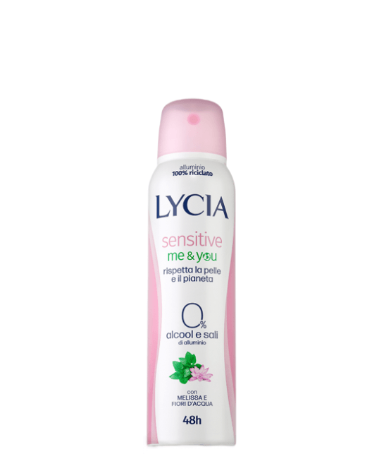 Deodorantul-spray Lycia Deo Spray Sensitive Me and You 48h cu eficiență de 48 de ore nu conține alcool sau săruri de aluminiu și este potrivit chiar și pentru pielea sensibilă. Deodorantul elimină mirosurile neplăcute și reglează transpirația fără a provoca iritații. Formula sa, bazată pe o componentă antibacteriană naturală selectivă, este capabilă să contracareze bacteriile care provoacă miros neplăcut, fără a perturba microbiomul pielii.