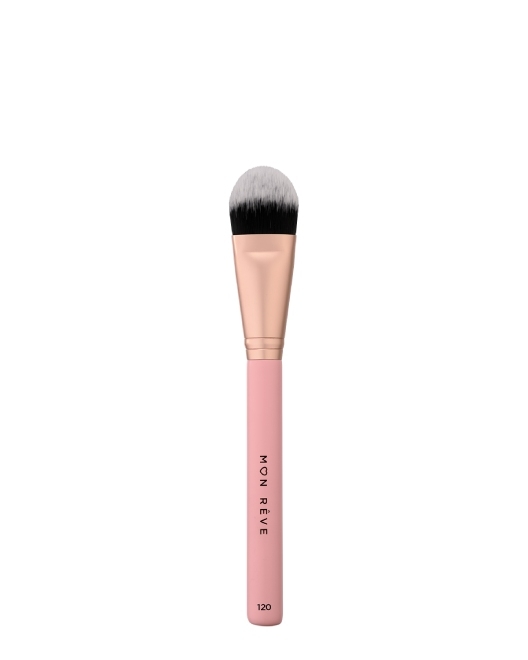 Pensula plată MON REVE 120 Flat Foundation Brush Face cu peri sintetici de înaltă calitate, puternici dar netezi, ideală pentru aplicarea fondurilor de ten lichide și cremoase. Forma sa unică asigură distribuirea și aplicarea uniformă, amestecând ușor produsul pentru un finisaj neted, natural și o acoperire subtilă. Pensula cu peri sintetici de înaltă calitate este foarte durabilă și ușor de curățat.