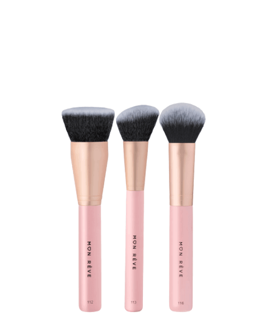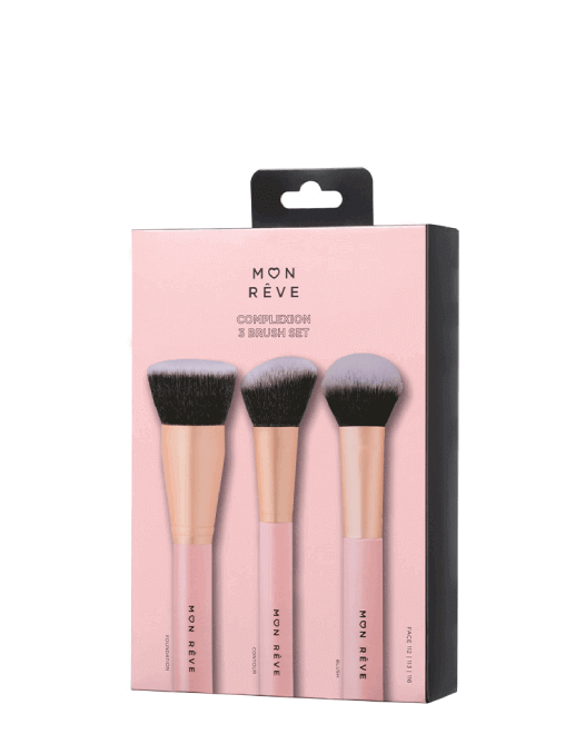Setul de pensule Complexion 3 include 3 perii de față indispensabile pentru a aplica și a amesteca cu ușurință produsele de bază preferate.