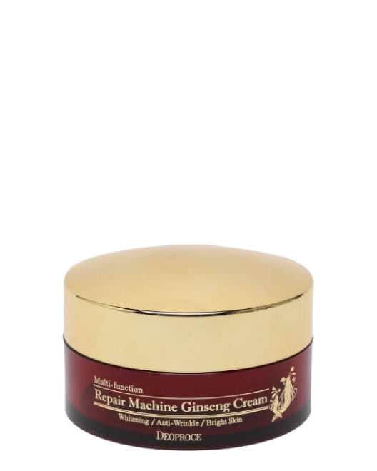 Crema de regenerare multifuncțională Deoproce Repair Machine Ginseng Cream are efect anti-îmbătrânire care funcționează în mai multe direcții: ușurează pigmentarea, niveleaza ridurile și asigură o protecție antioxidantă puternică. Crema este creată pentru a restabili pielea obosită si lipsită de viață. Perfectă pentru pielea vârstnică, problematică, uscată și sensibilă.