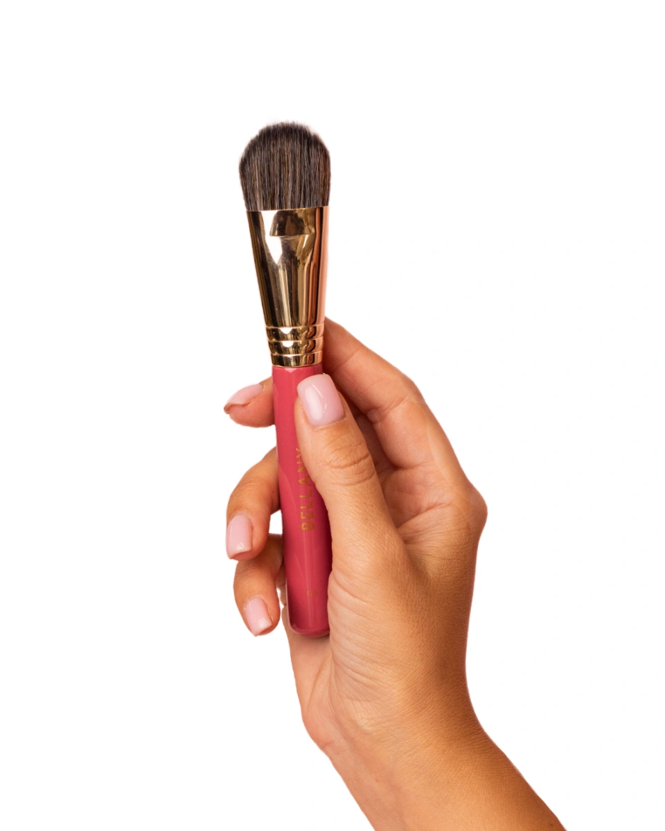 Скошенная форма кисти позволяет точно прорабатывать контуры лица, создавая плавные, естественные переходы.