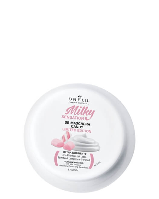 Насыщенная маска для волос Brelil Milky Sensation BB Mask Candy с кремовой текстурой обеспечивает волосам интенсивное питание и увлажнение. Маска эффективно восстанавливает поврежденные волосы, облегчает расчесывание, предупреждает спутанность, ломкость и появление секущихся концов. Средство уплотняет волосы, повышает их эластичность, придает гладкость и блеск, снижает пористость и пушистость. Делает волосы мягкими и послушными, укрепляет волосяные фолликулы, уплотняет волосы, способствует росту. Придает волосам сладкий конфетный аромат.