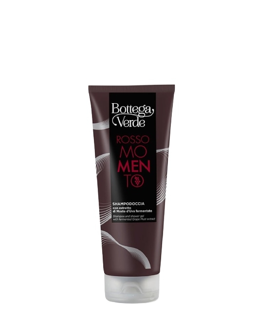 Парфюмированный шампунь и гель для душа 2 в 1 Bottega Verde Rosso Momento Shampoo and Shower Gel создан специально для мужчин и обладает деликатным, свежим ароматом. Продукт на основе ферментированного экстракта виноградного сусла оказывает антиоксидантный, увлажняющий и омолаживающий эффект, выравнивает тон кожи и смягчает. Средство эффективно и бережно очищает волосы и кожу тела, придавая им освежающий аромат, питает и способствует заживлению, придает волосам блеск и гладкость.
