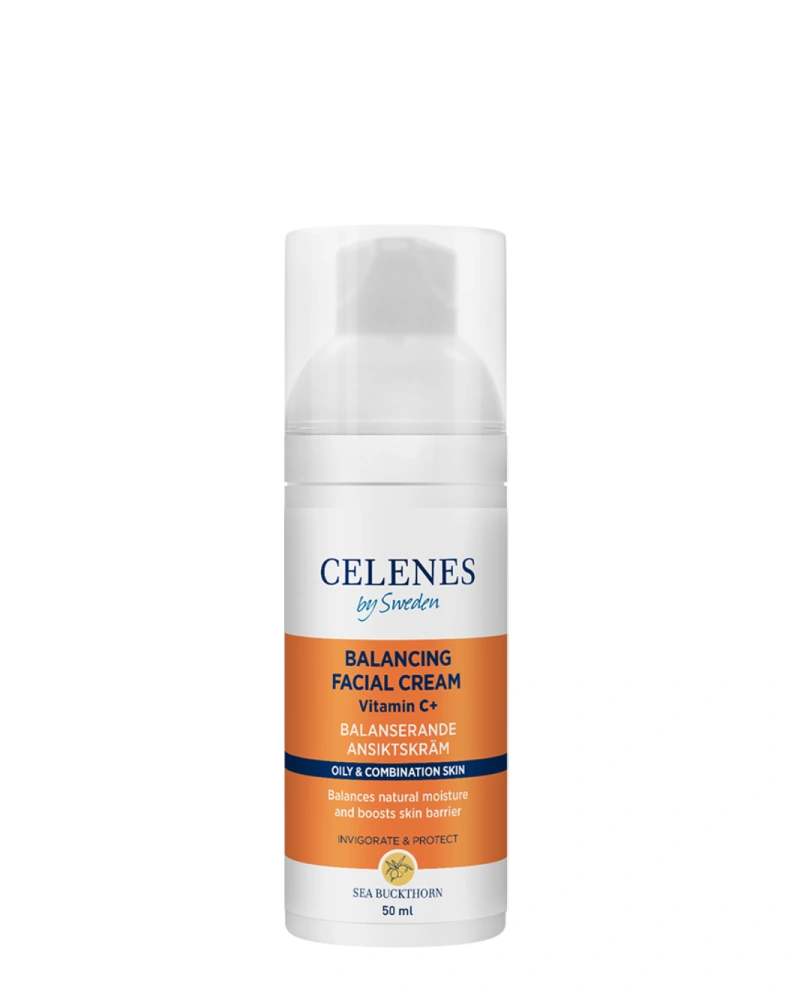 Осветляющий крем CELENES by Sweden Sea Buckthorn Balancing Facial Cream на основе экстракта облепихи оказывает противовоспалительный, успокаивающий и антиоксидантный эффект. Оказывает себорегулирующее действие, мягко осветляет пигментацию и постакне, предупреждая появление новых пятен. Крем снижает риск воспалений и появление закрытых комедонов. Активные компоненты средства эффективно успокаивают, устраняют покраснения и раздражение, смягчают кожу, выравнивают тон, рельеф и устраняют тусклый цвет лица, придавая естественное сияние. Продукт обновляет кожные покровы, увлажняет, оказывает антиоксидантный эффект, ускоряет заживление и регенерацию.