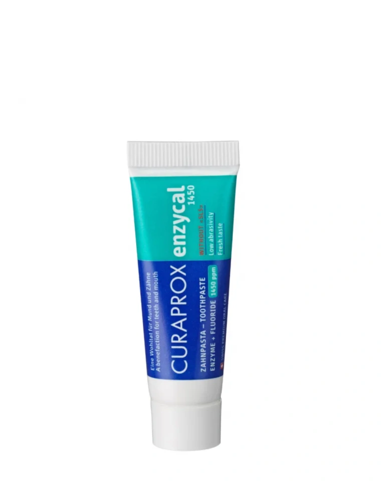 CURAPROX Enzycal 1450 – лечебно-профилактическая зубная паста для укрепления эмали. Она поддерживает местный иммунитет полости рта, усиливает антибактериальное, реминерализующее, очищающее действие слюны. Подходит для ежедневной чистки, восстановления эмали после отбеливания и защиты зубов от кариеса во время ношения брекетов. CURAPROX Enzycal 1450 содержит фторид натрия в концентрации 1450 ppm. Такое содержание фтора в зубной пасте оптимально для активного восстановления эмали и профилактики кариеса.