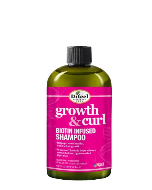 Бессульфатный, увлажняющий шампунь для ослабленных, пористых и кудрявых волос Difeel Growth and Curl Biotin Infused Shampoo на основе биотина и специального ингредиента растительного происхождения Wavemax, обеспечивает четкие локоны, устраняет пушистость и дисциплинирует кудри, придавая им четкую форму.