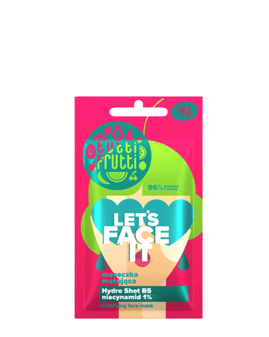 Матирующая маска Tutti Frutti Let’s Face It Mattifying Face Mask с ниацинамидом 1% + Hydro Shot B5 действует быстро и эффективно, оказывает общий оздоравливающий эффект на кожу, увлажняет и матирует. Маска выравнивает тон кожи, устраняет тусклый цвет лица, покраснения и раздражение, снижает уровень воспалений.