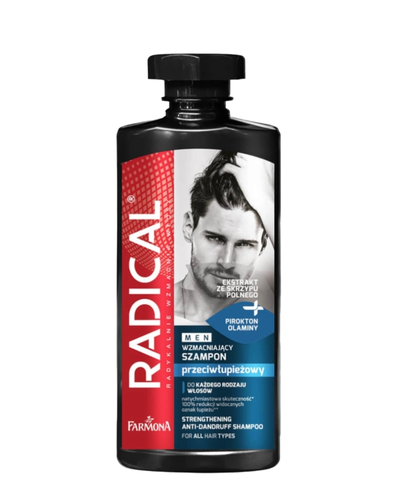 Шампунь против перхоти для мужчин Farmona Radical Men Strengthening Anti-dandruff Shampoo эффективно очищает волосы и кожу головы, а также устраняет перхоть и предотвращает её повторное появление. Шампунь успокаивает кожу головы, снимает зуд и избавляет от излишней жирности, укрепляя структуру волос по всей длине. Средство интенсивно увлажняет, придает волосам здоровый блеск и защищает их от негативного воздействия внешних факторов.