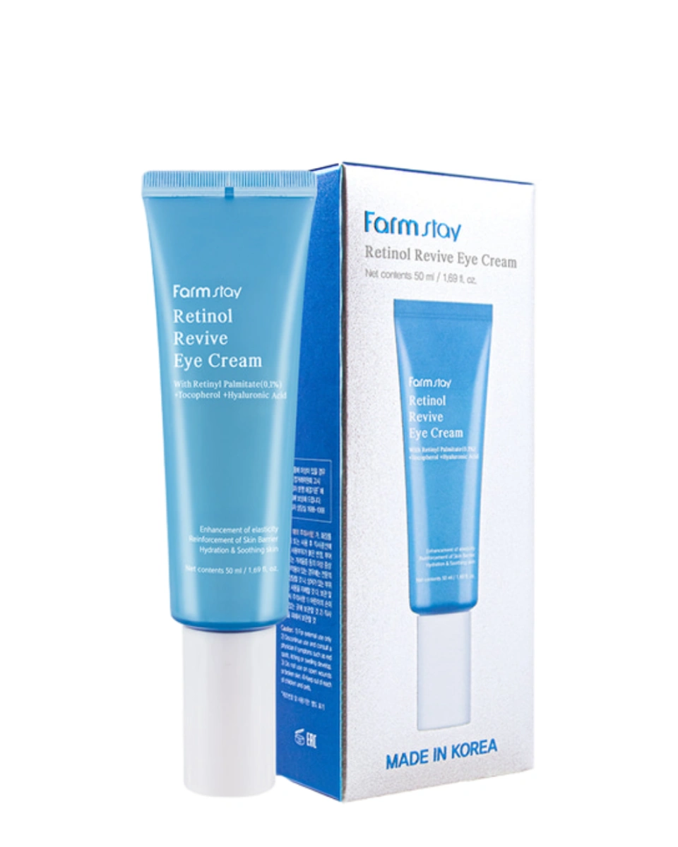 Крем для области вокруг глаз FarmStay Retinol Revive Eye Cream на основе двух видов ретинола эффективно повышает упругость и плотность кожи, укрепляет, увлажняет и питает, разглаживает мелкие морщинки. Действие крема направлено на антивозрастной уход: борьбу с морщинами, пигментацией, тёмными кругами, отёками.