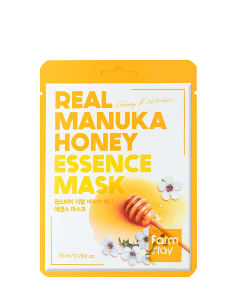 Питательная тканевая маска с экстрактом мёда манука FarmStay Real Manuka Honey Essence Mask подходит для любого типа кожи, но особенно хорошо работает на обезвоженной и сухой коже. Маска устраняет сухость, шелушения, ощущения стянутости. Средство увлажняет, питает, способствует заживлению и восстановлению кожи, придает гладкость и сияние.