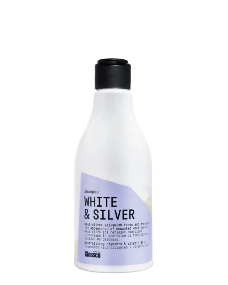 Шампунь Glossco White & Silver Shampoo с фиолетовым пигментом и мягким кондиционирующим эффектом, специально предназначен для белых, осветленных, мелированных и очень светлых оттенок блонда. Шампунь нейтрализует нежелательный желтый, золотистый или ржавый оттенок и придает холодный, серебристый оттенок. Увлажняет и придает блеск.