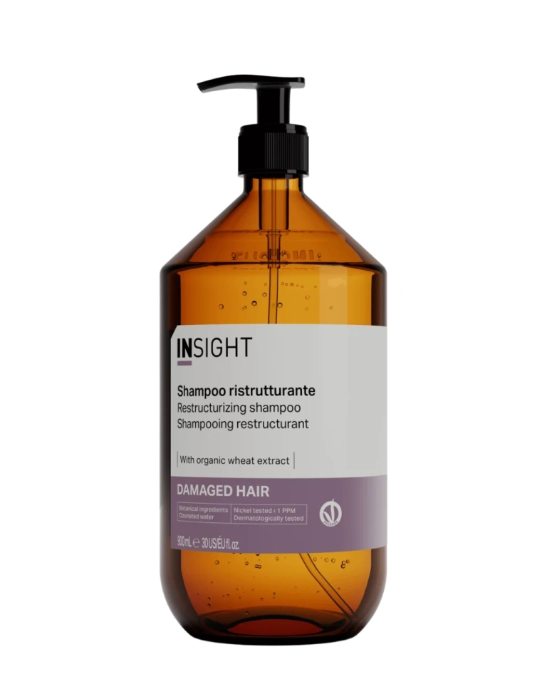 Эффективный восстанавливающий шампунь Insight Damaged Hair Restructurizing Shampoo на основе мягкой очищающей формулы образует густую пену и создан для регулярного ухода за ослабленными и поврежденными волосами; интенсивно питает и увлажняет, придает блеск и эластичность волосам, повышает их прочность.