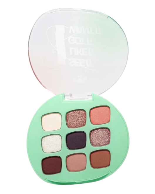 Палетка теней Love Generation I See it I like it I Want it I Got it состоит из 6 светлых и темных матовых оттенков и 3 универсальных сияющих. Матовые оттенки хорошо пигментированы, легко наносятся и растушевываются, не осыпаются в течение дня, а сияющие тона с полукремовой текстурой равномерно наносятся как кистью, так и пальчиком. Веганская формула. Не тестируется на животных.