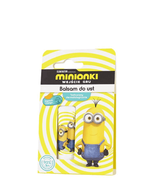 Бальзам для губ Minions Lip Balm для детей предназначен для эффективного увлажнения, смягчения и защиты нежной кожи детских губ от агрессивного воздействия внешних факторов. Формула бальзама мгновенно устраняет сухость, стянутость и шелушения, заживляет трещинки и предотвращает их дальнейшее появление. Дерматологически протестирован.