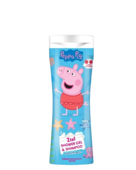 Средство для детей 2 в 1 Peppa Pig Shower Gel and Shampoo Cherry с ароматом черешни используется как шампунь и гель для душа и содержит до 96,6 % ингредиентов натурального происхождения. Средство бережно и эффективно очищает детскую кожу и волосы, увлажняет и смягчает. Уникальная формула содержит мягкие ПАВ, не вредящие коже и волосам. Средство мягко пенится и легко смывается.