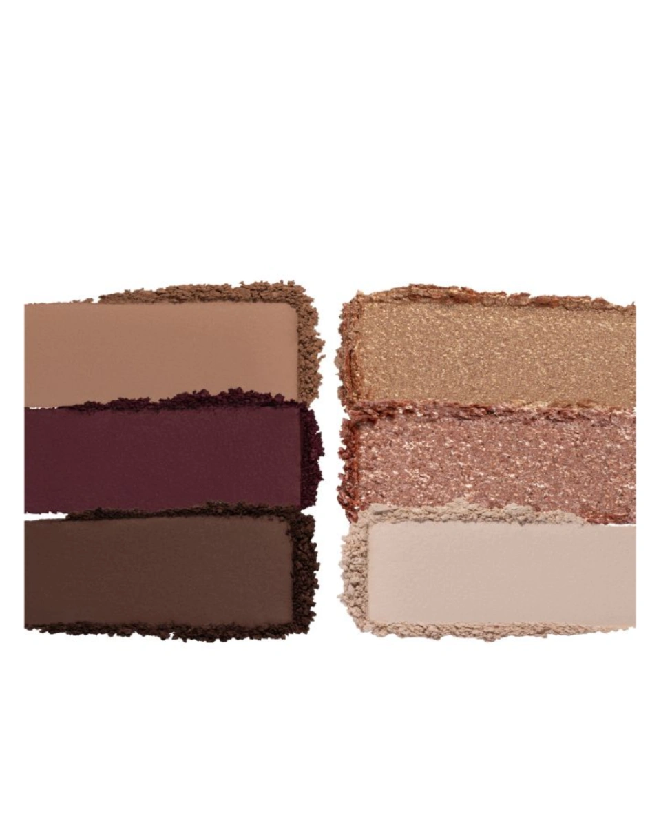 Paleta de trend combină nuanțe calde: maro-bej și gri-bej-deschis mate de dimensiune mărită, maro și burgundy mate, culori de aur roz și galben sidefate. Fardurile rezistente cu textură înalt pigmentată se aplică uniform, se potrivesc pentru orice tip de piele, nu o irită și nu se scutură pe parcursul zilei.