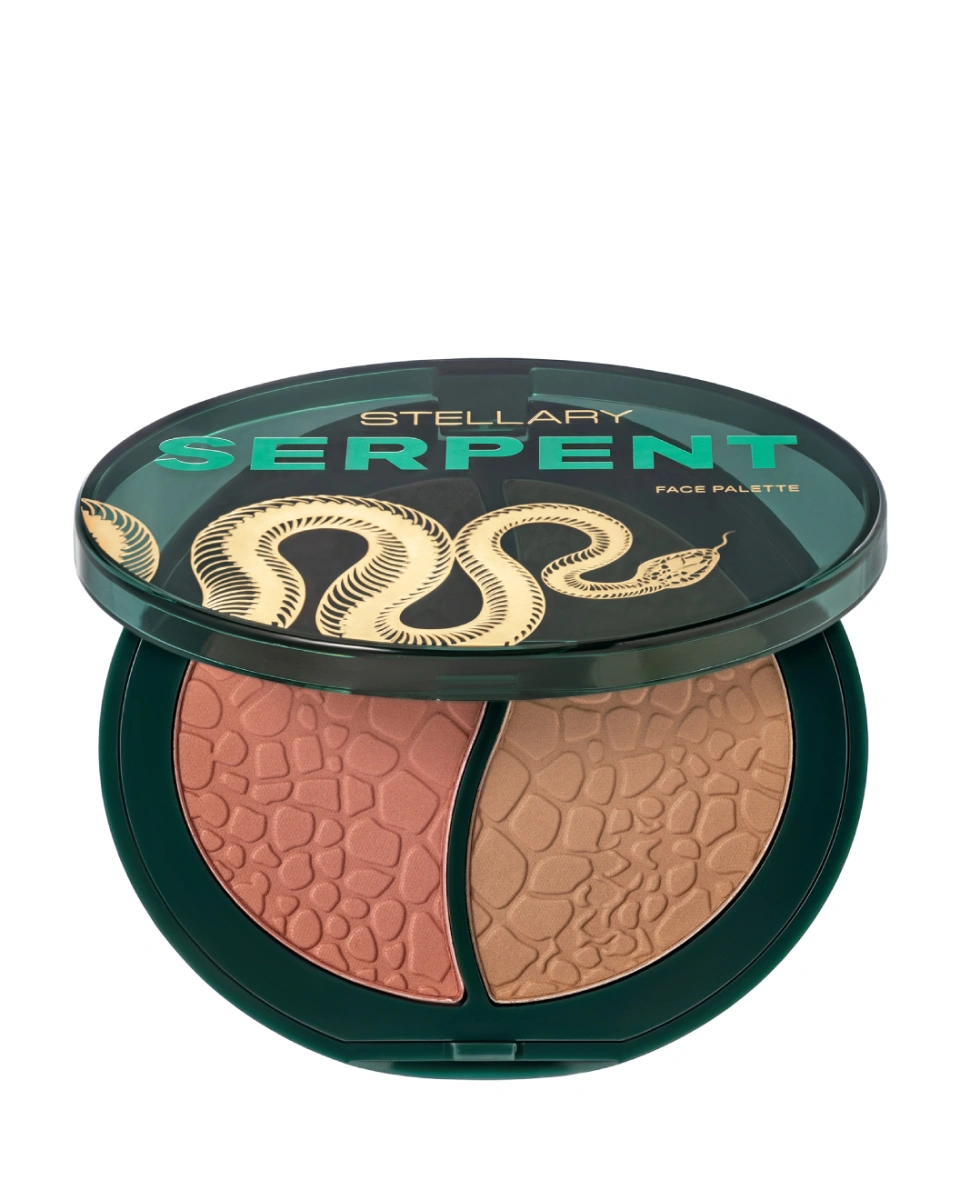 Paleta compactă de conturare și blush Stellary Blush & Sculpt Duo Face Palette Serpent Collection 01 combină un contur maro rece Line Flexibility și un blush teracotă Terracotta Flush, permițând crearea unor pomeți perfecți, corectarea vizuală a trăsăturilor feței și adăugarea de prospețime și strălucire. Textura pudrată se estompează ușor și lasă un finisaj mat.