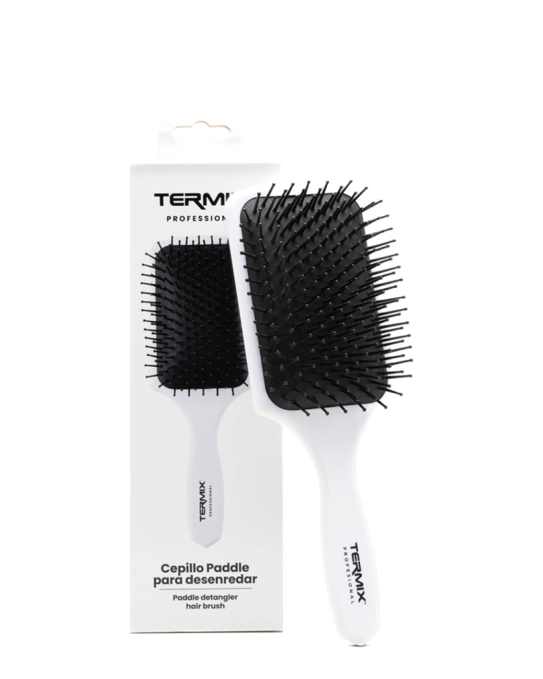 Peria profesională Termix Paddle Detangler Hair Brush White este concepută pentru pieptănarea și descurcarea rapidă, delicată a părului, fără smucituri, durere sau traumatizare a părului, și pentru o îngrijire blândă a acestuia. Pernița flexibilă cu aer și perii denși cu vârfuri rotunjite asigură o pieptănare delicată, care nu numai că previne ruperea părului, dar și masează scalpul, stimulând circulația sângelui și contribuind la sănătatea părului. Baza lată și plată permite prinderea unor șuvițe mari deodată, ceea ce este util pentru părul lung sau des, accelerează pieptănarea și reduce aspectul creț al părului.
