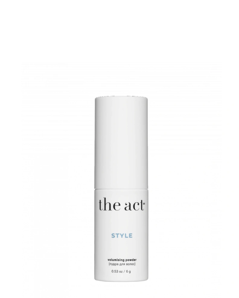 Pudra pentru păr The Act Volumising Powder Style – produs rapid pentru coafare, care conferă volum și textură părului, absoarbe excesul de sebum și neutralizează mirosurile, iar formula sa echilibrează și menține sănătatea scalpului. Pudra conferă volum elastic la rădăcină și textură părului. Nu lasă urme pe păr, face părul mai ascultător, asigură o fixare elastică și facilitează coafarea.