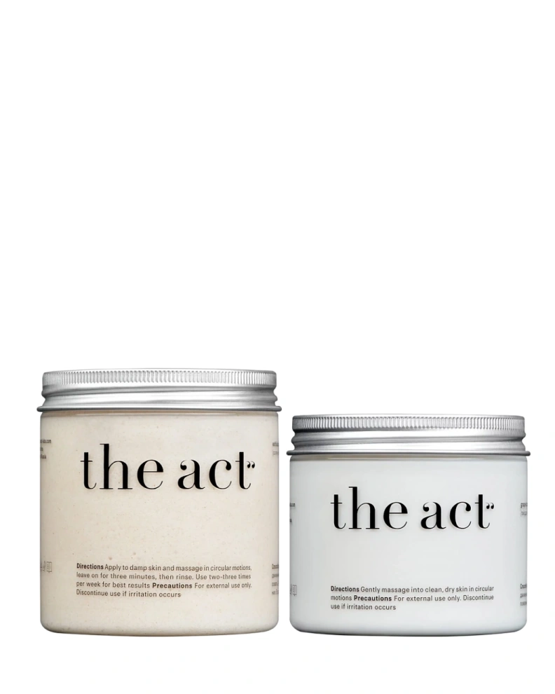 - Scrub-balsam de corp cu sare de mare și cocos The Act Exfoliating Sea Salt & Coconut Body Balm 300 g, pe bază de cocos și sare marină, combină proprietățile exfoliante cu cele hidratante. Conține o fracție exfoliantă fină, formată din particule rotunde mici, fără margini ascuțite, astfel încât nu traumatizează și nu zgârie pielea. Produsul exfoliază blând și delicat, curăță porii, hidratează și hrănește, contribuie la eliminarea iritațiilor și a uscăciunii, calmează, stimulează procesele de regenerare și refacere, reglează secreția de sebum și are efect antiinflamator. Are o aromă plăcută de cocos.