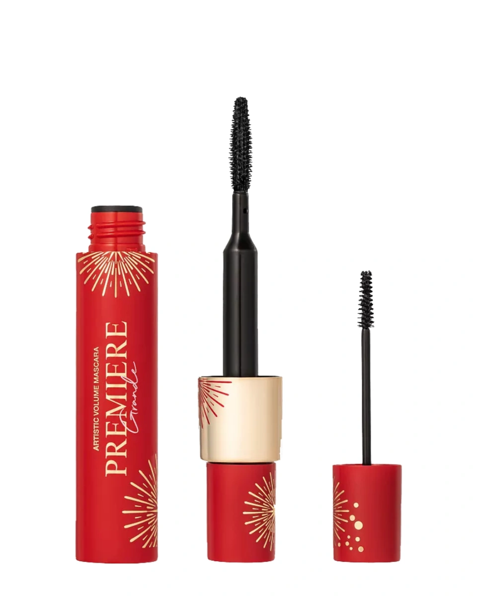 Rimelul dublu pentru gene Vivienne Sabo Artistic Volume Mascara Premiere Grande de culoare neagră are două periuțe: o periuță din silicon, pufoasă, pentru genele superioare, care conferă un volum spectaculos, îngroșând firele de la rădăcină până la vârfuri. Periuța mini pentru genele inferioare, care vopsește cu precizie chiar și cele mai subțiri fire de păr, separându-le fără a crea cocoloașe sau a le lipi. Rimelul poate fi aplicat în mai multe straturi, amplificând efectul, fără a forma cocoloașe și fără să se scuture.