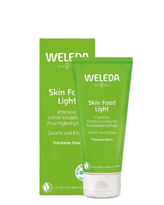 Crema multifuncțională pentru toate tipurile de piele WELEDA Skin Food Light Cream are o textură bogată, dar ușoară și se absoarbe rapid, hrănește și hidratează intens pielea, elimină rapid senzația de întindere și uscăciune, roșeață și iritație. Crema revitalizează pielea deteriorată, vindecă, o face netedă și o catifelează. Produsul poate fi utilizat ca: